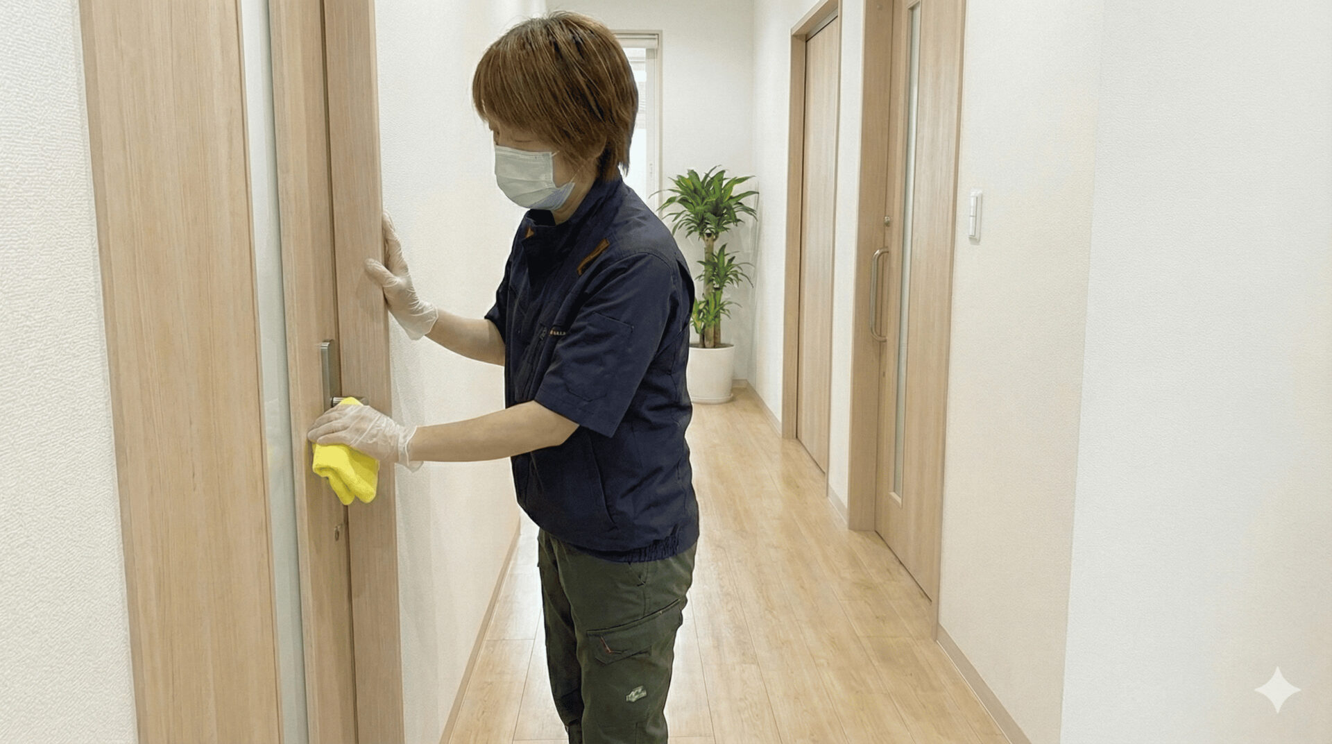 施設ごとに清掃道具・手順を分け、交差汚染を防ぐ体制で衛生管理を行っています。